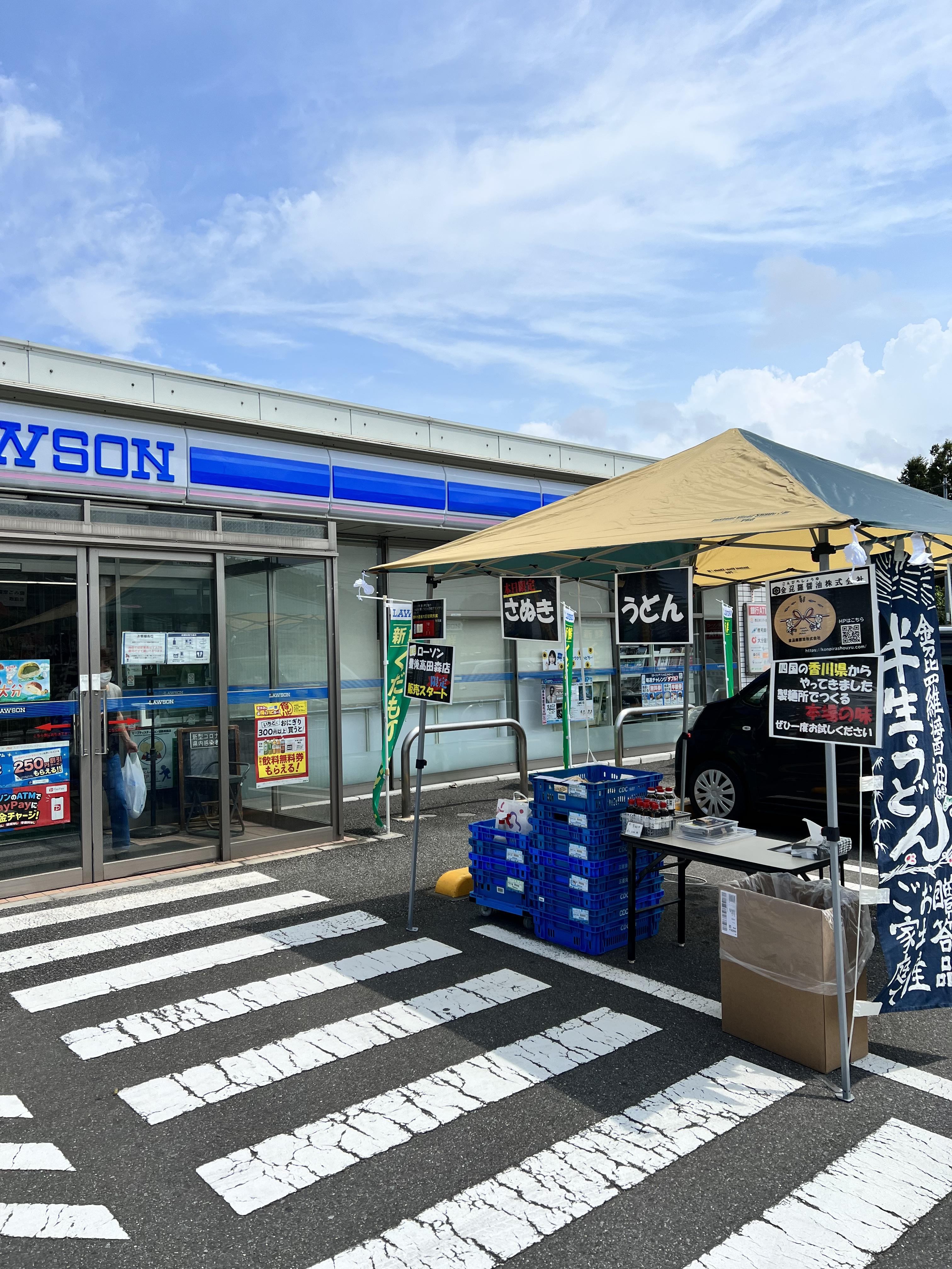 ローソン豊後高田森店さんで、試食販売会! 2023.08.12 令和5年8月12日 大分県のローソン豊後高田森店さんで、試食販売会を行いました。柔らかいうどんを好む場所で、讃岐のコシの強いうどん。皆さん喜んで頂きありがとうございました????